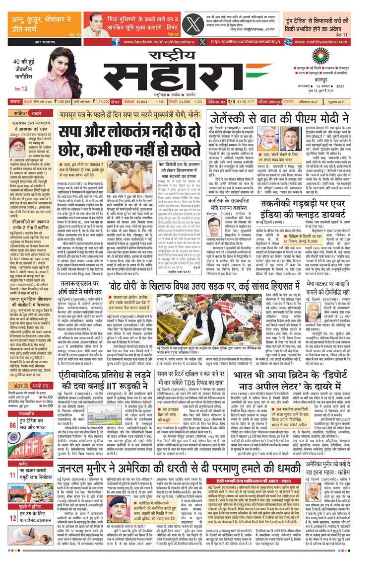 Rashtriya Sahara ePaper : No 1 newpaper of hindi | hindi epaper, News paper hindi , कानपुर rashtriyasahara | rashtriyasahara.com